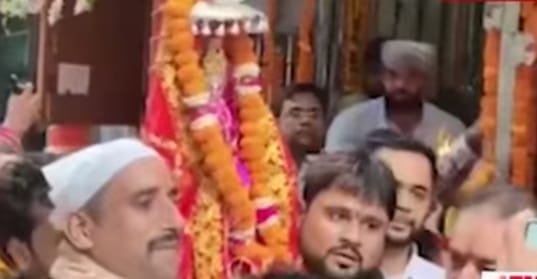 उत्तर भारत की प्रसिद्ध एवं ऐतिहासिक मां मनसा देवी की शोभायात्रा नगर क्षेत्र में धूमधाम से निकाली