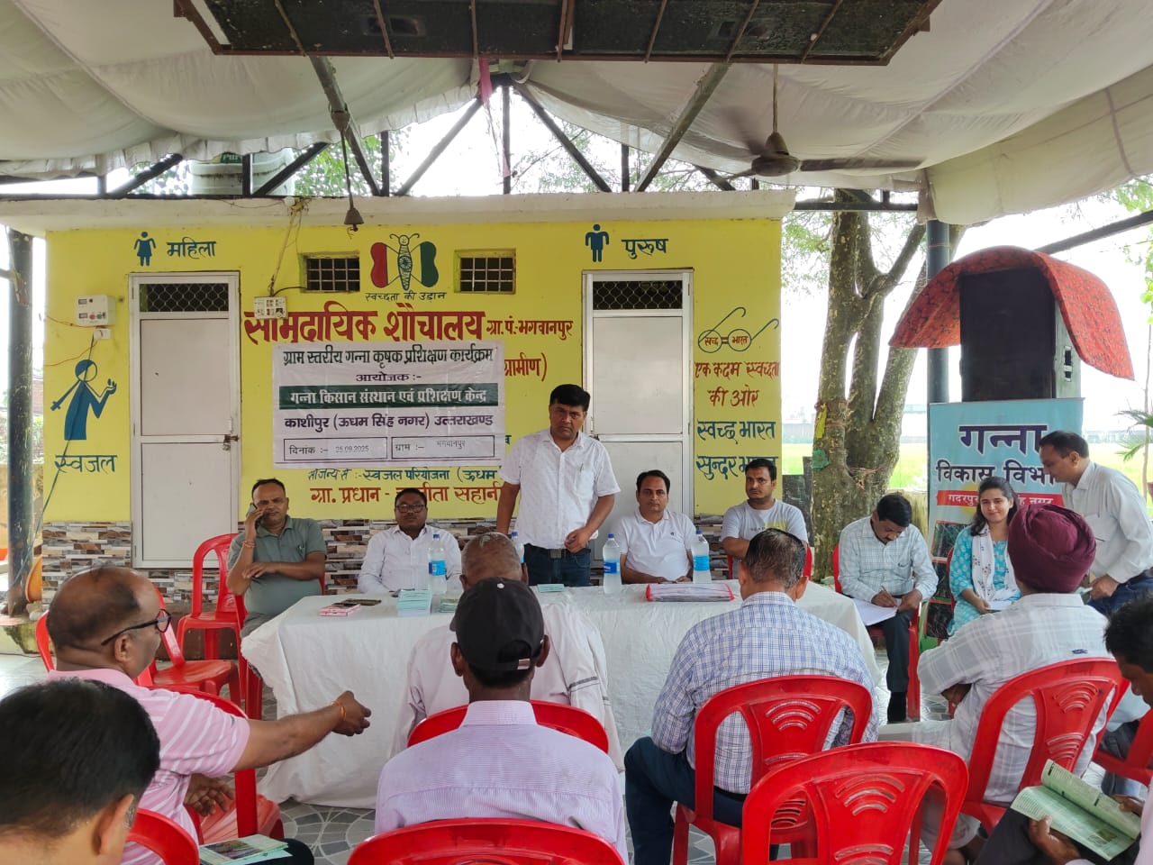 काशीपुर। गन्ना किसान संस्थान एवं प्रशिक्षण केंद्र काशीपुर द्वारा गदरपुर परिक्षेत्र के ग्राम भगवानपुर में एकदिवसीय कृषक गोष्ठी का आयोजन किया गया। गोष्ठी को संबोधित करते हुए गन्ना विभाग के प्रचार एवं जनसंपर्क अधिकारी श्री नीलेश कुमार ने नव घोषित सट्टा नीति के विषय में किसानों को अवगत कराया और कहा कि शरदकालीन गन्ना बुवाई का समय आ चुका है। किसानों को अपने खेत की उचित तैयारी एवं उत्तम बीज का चुनाव करने पर जोर देना चाहिए। उन्होंने बताया कि हर गन्ना कृषक अपने खेत का निरीक्षण करें और यदि फसल में किसी बीमारी के लक्षण दिखें तो उसका फोटो गन्ना शोध केंद्र के वैज्ञानिकों को भेजें, जिससे फोन पर ही तत्काल सहायता उपलब्ध कराई जा सके। उन्होंने किसानों से नवीनतम तकनीक अपनाने, भूमि की जांच कराने और कमी पाए जाने पर सूक्ष्म पोषक तत्वों की पूर्ति करने की सलाह दी। गोष्ठी का उद्देश्य किसानों को उन्नत प्रजाति के गन्ना बीज, गन्ने की फसल में लगने वाली विभिन्न बीमारियों, दवाइयों एवं वैज्ञानिक विधि से कृषि करने के तरीकों की जानकारी देना था ताकि प्रति हेक्टेयर उत्पादकता बढ़ाई जा सके। इस अवसर पर गन्ना अनुसंधान केंद्र के वैज्ञानिक अधिकारियों ने बताया कि वर्तमान में 15023, 13235 और 14201 जैसी उन्नतशील गन्ना प्रजातियों को प्रोत्साहित करना चाहिए। वर्तमान में 0238 प्रजाति रेड रॉट रोग की चपेट में है, इसलिए कृषकों को इसे बदलने की सलाह दी गई। वैज्ञानिकों ने कीट एवं रोग प्रबंधन के विषय में भी विस्तार से जानकारी दी। इस बैठक में गन्ना अनुसंधान केंद्र के वैज्ञानिक श्री संजय कुमार, श्री प्रमोद कुमार, गन्ना विभाग के अधिकारी-कर्मचारी, बाजपुर चीनी मिल के प्रतिनिधि तथा बड़ी संख्या में प्रगतिशील कृषक मौजूद रहे।