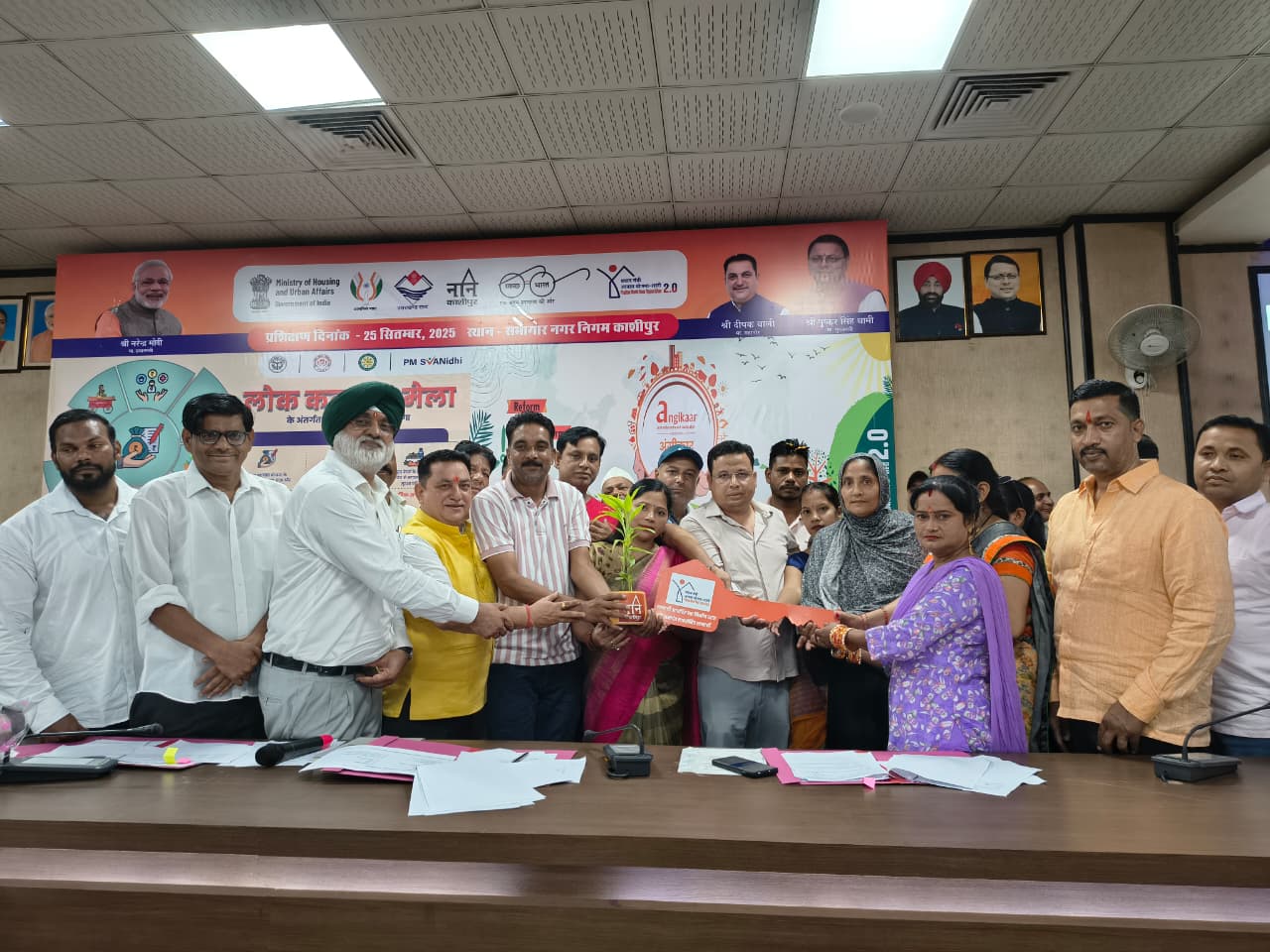 काशीपुर। प्रधानमंत्री नरेंद्र मोदी जी के जन्म दिवस सेवा पखवाड़ा के तहत आज पंडित दीनदयाल उपाध्याय जी की जयंती के अवसर पर नगर निगम द्वारा लोक कल्याण मेला आयोजित किया गया जिसमें सैकड़ो लोगों ने भाग लिया। इस अवसर पर प्रधानमंत्री आवास योजना के लाभार्थियों को उनके आवासों की चाबियां सोंपी गई। स्वास्थ्य शिविर का आयोजन किया गया तथा स्वयं सहायता समूह की महिलाओं ने अपने द्वारा उत्पादित रोजमर्रा के इस्तेमाल में आने वाले सामानों के स्टॉल लगाए गए। महापौर दीपक बाली ने इस अवसर पर खचाखच भरे सभागार में सभी को देश को साफ और स्वच्छ रखने की शपथ दिलाई। नगर निगम पहुंचे महापौर का महासंघ ठेला फड एसोसिएशन के अध्यक्ष भारत पाराशर सचिव विनेश उपाध्यक्ष मनोज पंडित संगठन मंत्री विपिन कुमार कोषाध्यक्ष दुष्यंत तथा महामंत्री आकाश कुमार के नेतृत्व में उनके दर्जनों साथियों द्वारा पुष्प वर्षा कर जोरदार स्वागत किया गया। महापौर दीपक बाली विधायक त्रिलोक सिंह चीमा तथा नगर आयुक्त रविंद्र सिंह बिष्ट द्वारा नगर निगम सभागार में लगाए गए स्वास्थ्य शिविर एवं सभागार में लगे मेले का उद्घाटन पंडित दीनदयाल उपाध्याय जी के चित्र पर माल्यार्पण कर किया गया। स्वयं सहायता समूह की महिलाओं द्वारा लगाए गए स्टालों का भी निरीक्षण किया गया। समूह की महिलाओं द्वारा प्रस्तुत किए गए स्वागत गीत के बाद कार्यक्रम का शुभारंभ हुआ। इस अवसर पर महापौर दीपक बाली ने कहा कि प्रधानमंत्री नरेंद्र मोदी देश को विश्व गुरु बनाने के प्रयासों में लगे हुए हैं और जिस तेजी से उन्होंने देश का विकास किया है ऐसा महापुरुष सदियों में जाकर पैदा होता है। प्रधानमंत्री जी ने अपने जन्मदिन को भी जन-जन को समर्पित कर दिया है। श्री बाली ने कहा कि प्रदेश के यशस्वी मुख्यमंत्री पुष्कर सिंह धामी ने भी जनता की सेवा में कोई कमी नहीं छोड़ी है और पीएम आवास योजना में उन्होंने प्रदेश सरकार की ओर से मिलने वाली मदद को और बढ़ाया है। महापौर ने कहा कि हमारा उद्देश्य है कि कोई भी व्यक्ति बेघर ना रहे। इसलिए पार्टी के सभी पदाधिकारियों पार्षदों एवं उपस्थित जनसमूह से मेरा अनुरोध है कि वह अपने आसपास देखें कि कोई बेघर तो नहीं है। अगर कोई ऐसा दिखाई देता है तो नगर निगम के द्वारा उसकी मदद कराई जाए। हम हर वक्त बेघर लोगों की मदद के लिए तैयार हैं। नगर निगम द्वारा शीघ्र ही शहर के पांच क्षेत्रों में अस्पताल खोलकर गरीब रोगियों की मदद की जाएगी और दवा के साथ-साथ उनके सभी चेकअप फ्री में होंगे। इसके लिए प्रदेश सरकार ने टेंडर कर दिया है। जहां भवन नगर निगम के होंगे वहां उनमें अस्पताल खोले जाएंगे और जिन क्षेत्रों में नगर निगम के भवन नहीं होंगे वहां किराए के भवन लेकर अस्पताल चलाए जाएंगे। महापौ