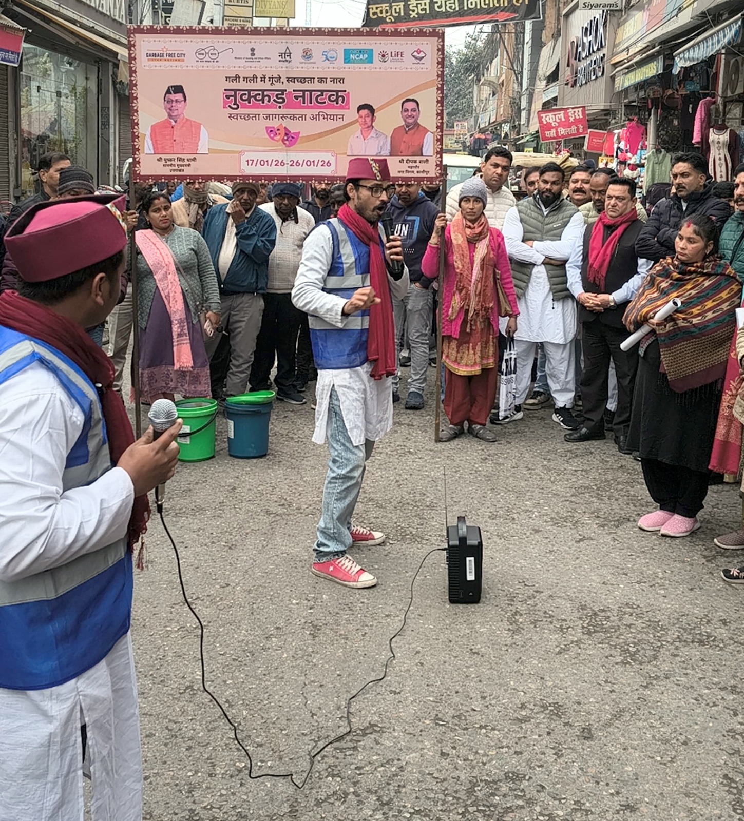 नुक्कड़ नाटक के माध्यम से नगर निगम द्वारा नगर क्षेत्र में स्वच्छता को लेकर जागरूकता