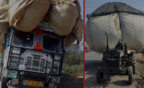 आरटीओ ने ओवरलोड भूसे से भरे एक ट्रक व एक ट्रैक्टर-ट्राली को सीज किया
