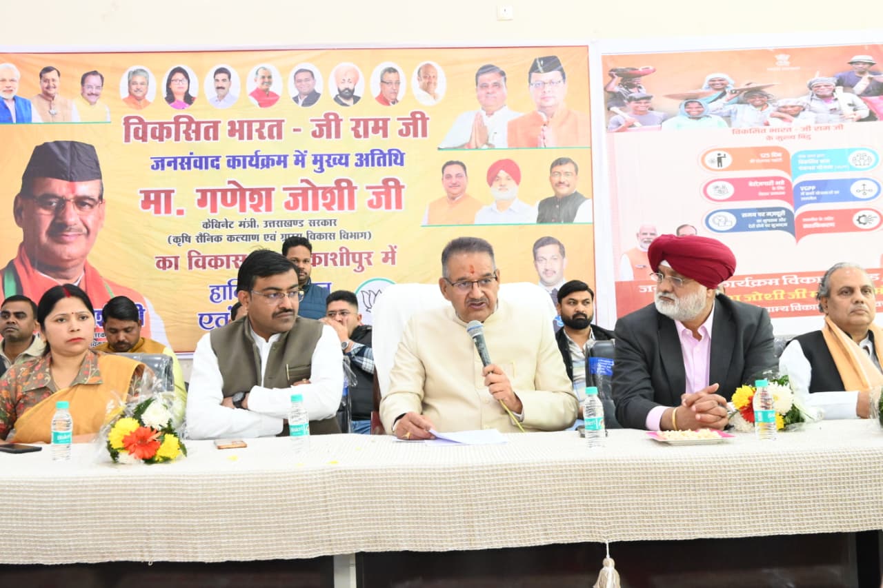 काशीपुर। काशीपुर के ब्लॉक में प्रदेश के ग्राम्य विकास मंत्री गणेश जोशी ने आयोजित विकसित भारत रोजगार और आजीविका गारंटी मिशन (ग्रामीण) वीबी जी राम जी बिल 2025 पर आधारित कार्यशाला में मुख्य अतिथि के रूप में प्रतिभाग किया। इस अवसर पर उन्होंने किसानों एवं स्थानीय लोगों से संवाद कर सरकार की ग्रामीण रोजगार नीति की जानकारी दी। ग्राम्य विकास मंत्री गणेश जोशी ने विपक्ष पर निशाना साधते हुए कहा कि विपक्ष द्वारा मनरेगा को समाप्त किए जाने की अफवाह निराधार है। उन्होंने कहा कि प्रधानमंत्री नरेंद्र मोदी एवं केंद्रीय…