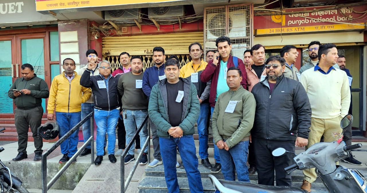 काशीपुर। राष्ट्रव्यापी श्रमिक हड़ताल के मध्य नजर बैंक कर्मियों की शीर्ष संस्था ऑल इंडिया बैंक एम्पलाइज एसोसिएशन के आवाहन पर देशभर के राष्ट्रीयकृत बैंकों में यूनियन से जुड़े हुए सभी बैंक कर्मी आज हड़ताल पर रहे। हड़ताल का असर काशीपुर की सभी बैंक शाखो में दिखाई पड़ा। पूर्व घोषित कार्यक्रम के अनुसार सभी बैंक कर्मचारी रामनगर रोड स्थित पंजाब नेशनल बैंक की शाखा पर एकत्रित हुए और यहां पर उन्होंने जोरदार प्रदर्शन किया। उन्होंने सरकार के द्वारा श्रम कानून में बदलाव का विरोध करते हुए सरकार से इन कानून को और बदलाव को खत्म करने की मांग की। कर्मचारी नेताओं का कहना था की वर्तमान सरकार इस देश के मजदूर और कर्मचारियों का गला घोटने चाहती है और इसी रणनीति के तहत उनके अधिकारों का दामन करना चाहती है, जिसको इस देश का बैंक कर्मचारी वर्ग और मजदूर वर्ग किसी भी कीमत पर बर्दाश्त नहीं करेगा। उन्होंने कहा कि आज इन्हीं श्रम कानून में बदलाव के विरोध में देश के लाखो बैंक कर्मी और मजदूर संगठन सांकेतिक रूप से हड़ताल कर रहे हैं। सभा में बोलते हुए पंजाब नेशनल बैंक स्टाफ एसोसिएशन के ललित तिवारी ने सरकार को चेताया कि वह श्रमिक विरोधी नीतियों से बाज आए अन्यथा बैंक कर्मियों को बड़े आंदोलन की राह पकड़नी पड़ेगी। वही बैंक ऑफ बड़ोदा स्टाफ एसोसिएशन उत्तराखड के प्रांतीय अध्यक्ष सत्यपाल शर्मा ने कहा की सरकार बैंक कर्मचारी के साथ हुए द्विपक्षीय समझौते के तहत पांच दिवसीय बैंकिंग को अभिलंब लागू करें और बैंकों में नई भर्तियां लागू की जाएं देश भर की बैंक शाखो में कर्मचारियों के साथ-साथ चतुर्थ श्रेणी स्वच्छता कर्मचारियों का भारी अभाव है, लेकिन सरकार की ओर से बैंकों में कोई भी भर्ती नहीं की जा रही है। सरकार श्रमिक विरोधी नीतियों को छोड़कर पहले निर्णय लिए गए फैसलों को लागू करें। आज के प्रदर्शन में पंजाब नेशनल बैंक के ललित तिवारी, रोबिन सिंह, सेंट्रल बैंक आफ इंडिया के नितिन गोला, नरेश कुमार, आकाश सक्सेना, सचिन कुमार, राहुल यादव, गिरीश पोखरियाल, संजय मास्टर गौतम, मोहम्मद हारुन, अभिषेक कार्की, विनोद कुमार, विनीत कुमार, दिगंबर सिंह, सुंदर सिंह कार्की आदि बैंक कर्मी मौजूद रहे।