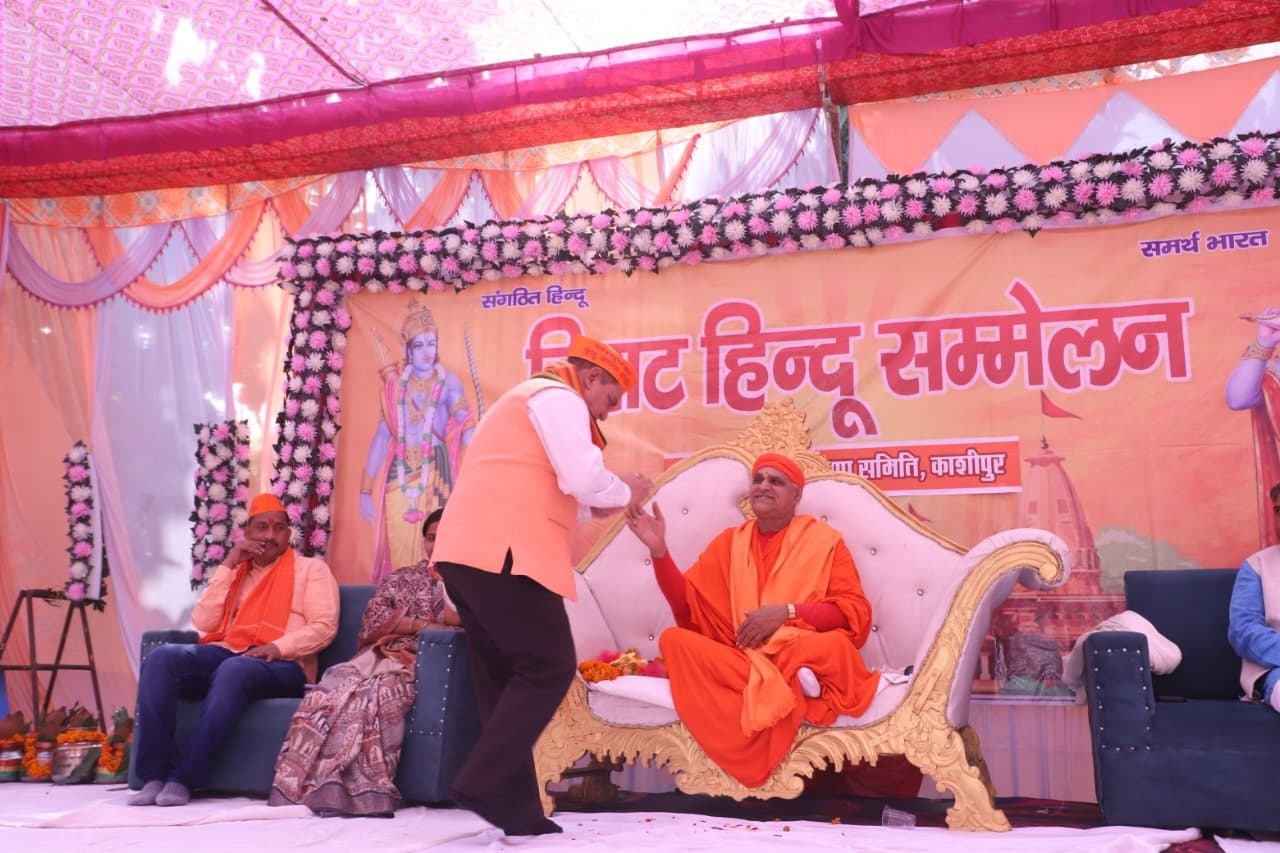 काशीपुर। श्री गंगे बाबा मंदिर मोहल्ला किला काशीपुर में विराट हिन्दू सम्मेलन का आयोजन किया गया। विराट हिंदू सम्मेलन में सर्वप्रथम हवन पूजन कर श्री गणेश वंदना के साथ व अतिथि गणों द्वारा भगवान श्री रामचंद्र जी के चित्र पर दीप प्रज्वलित कर आशीर्वाद लेकर कार्यक्रम का शुभारंभ हुआ। विराट हिंदू सम्मेलन के मुख्य अतिथि एवं विशिष्ट अतिथियों का श्री सत्य सनातन हिंदू सम्मेलन समिति प्रताप एवं ऽत्रियान समिति काशीपुर के पदाधिकारियों द्वारा अतिथियों का स्वागत सम्मान भगवान श्रीराम जी का पटका व रुद्राक्ष की माला पहनाकर सम्मानित किया गया।…