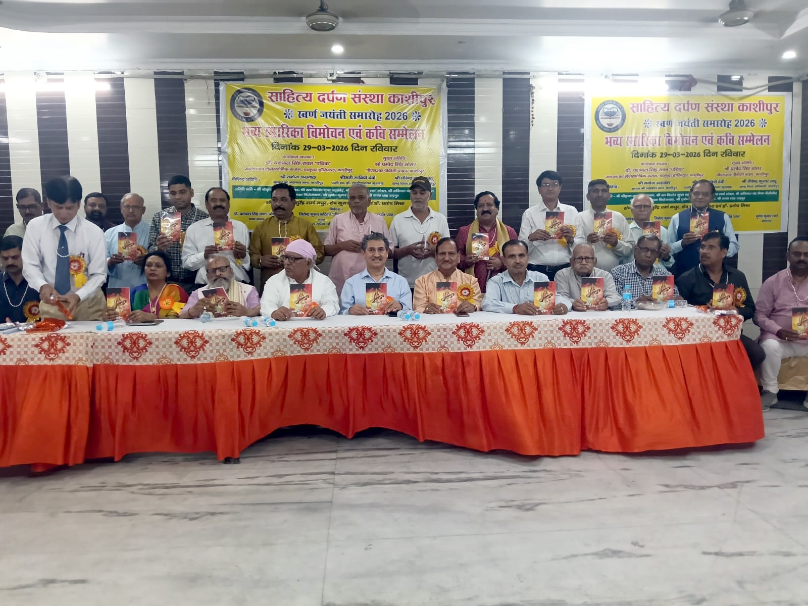 काशीपुर। श्री अग्रवाल सभा में साहित्य दर्पण संस्था के तत्वावधान में संस्था की स्वर्ण जयंती समारोह के अवसर पर आयोजित भव्य स्मारिका विमोचन एवं कवि सम्मेलन का शुभारंभ कार्यक्रम अध्यक्ष डॉ एस- पाल सिंह रावत ने मां शारदे के चित्र पर माल्यार्पण एवं दीप प्रज्वलित कर किया। पिछले पांच दशक से मां शारदे के चरणों में समर्पित साहित्य दर्पण संस्था साहित्य, संस्कृति और संस्कारों को सहेजते हुए अपनी स्वर्ण जयंती पर भव्य स्मारिका विमोचन और काव्य सम्मेलन का आयोजन किया। काव्य सम्मेलन का शुभारंभ संस्था महामंत्री कवि सोमपाल प्रजापति ने…