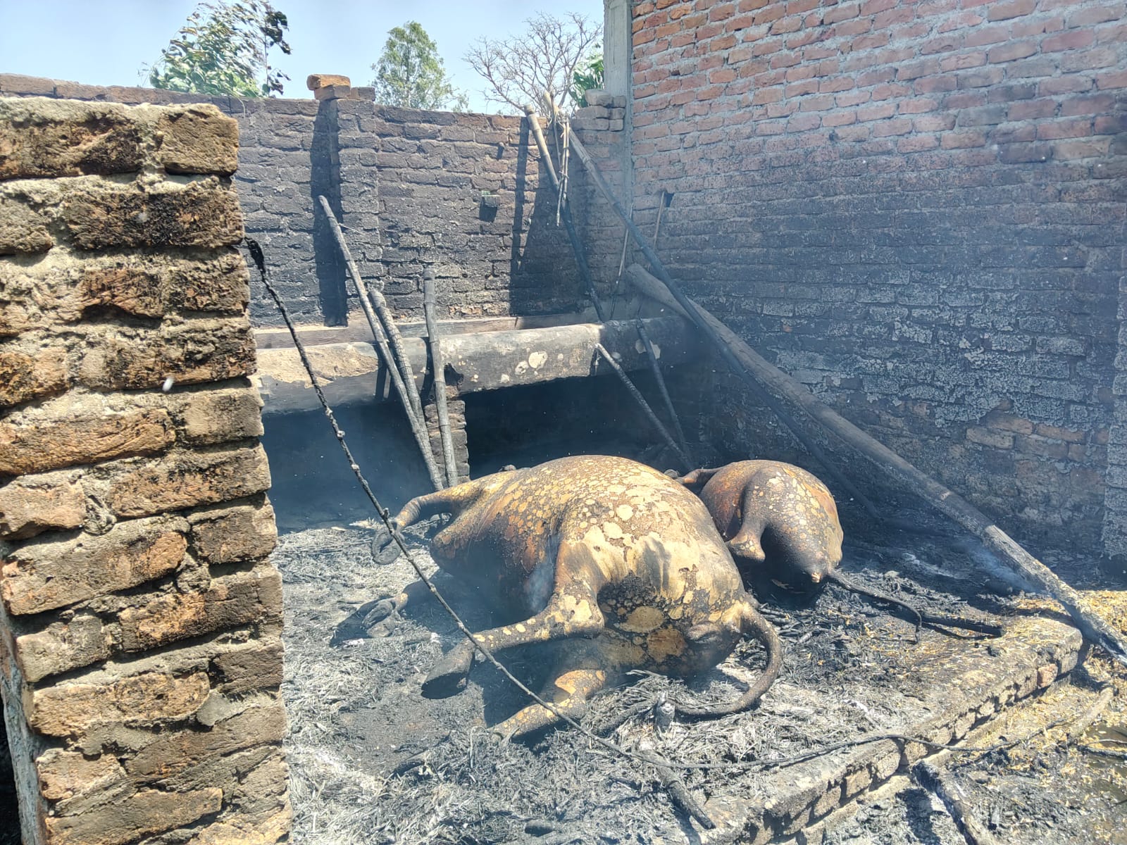 गौशाला की झोपड़ी में आग लगने से दो भैंस व एक बकरी जिंदा जली